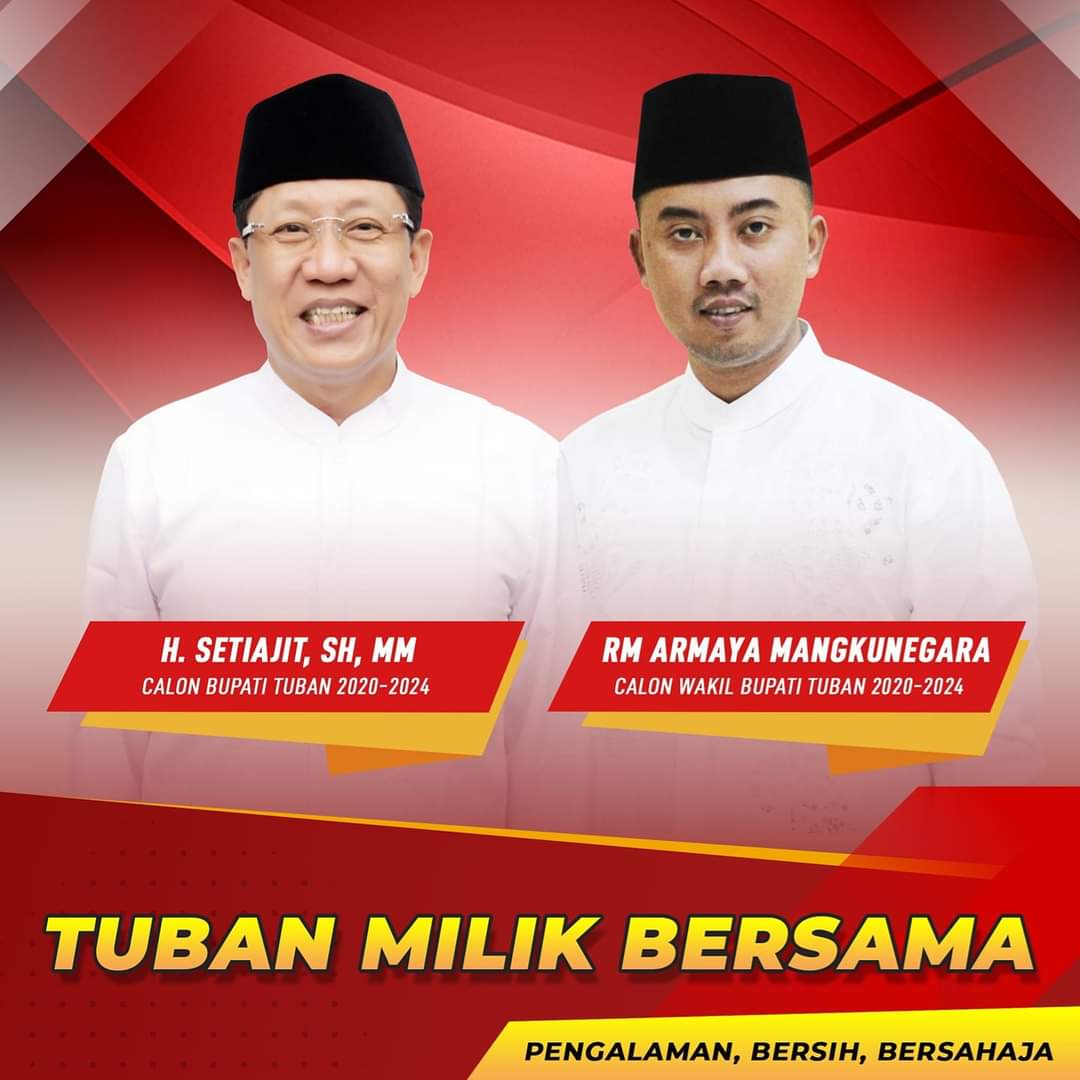 Secara resmi pasangan H.Setiajit.SH.MM dan Dr.RM.Armaya Mangkunegara.SH.MH mendapatkan Rekomendasi dari 5 partai yang mengusungnya , yaitu Partai PDI-P , PAN PPP , PBB dan Hanura , sehingga pasangan tersebut aman untuk melenggang sebagai Calon Bupati dan Wakil Bupati Tuban 2020-2024 pada Pilkada 09 Desember 2020.