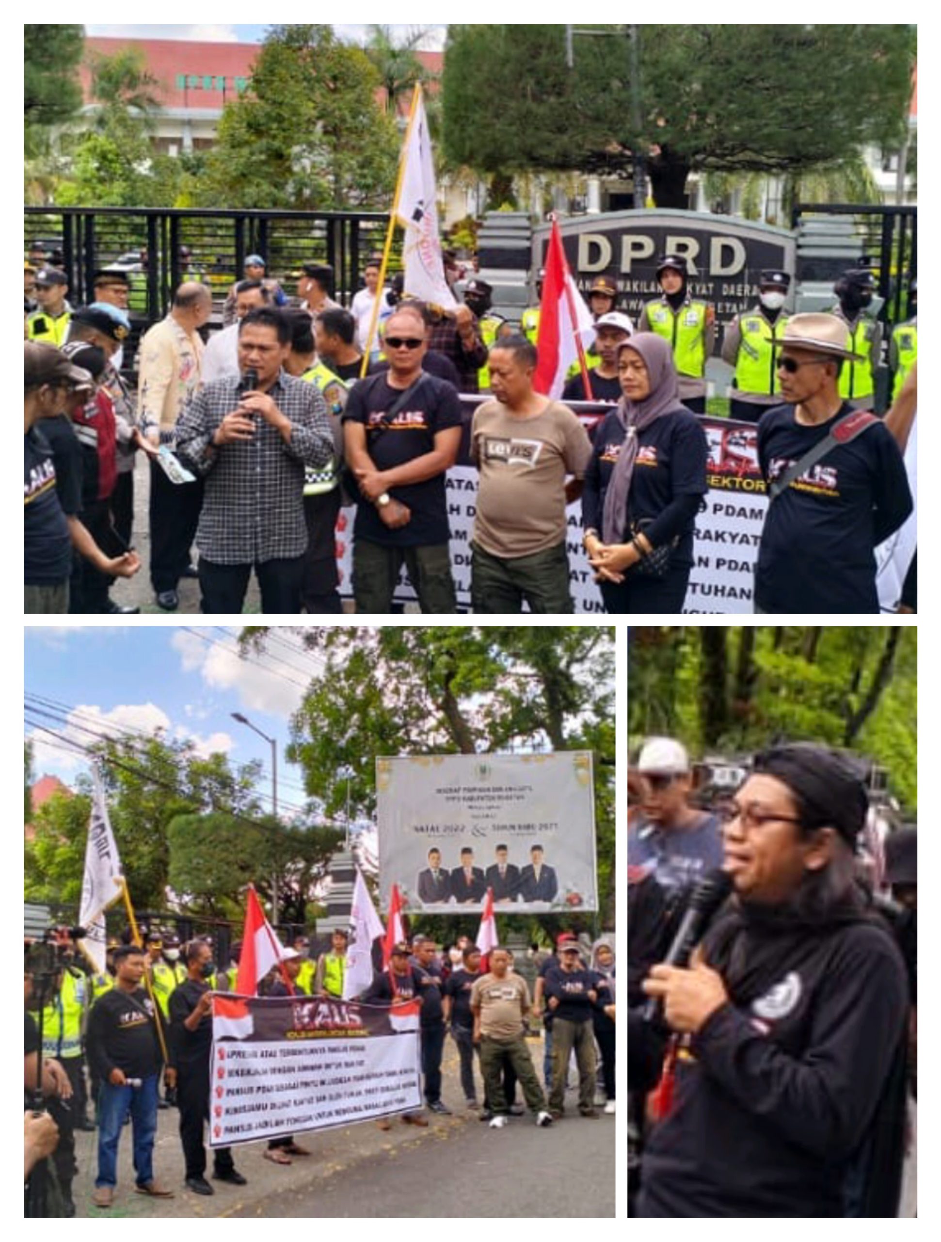 Sambil berorasi nya, para demonstran membentangkan sejumlah sepanduk berisikan sejumlah tuntutan serta mempertanyakan bukti otentik pengesahan Surat Keputusan pembentukan Panitia Khusus atau Pansus untuk mengawasi dan mengaudit Perumdam Lawu Tirta Magetan yang diduga banyak terjadi pelanggaran maupun penyelewengan.