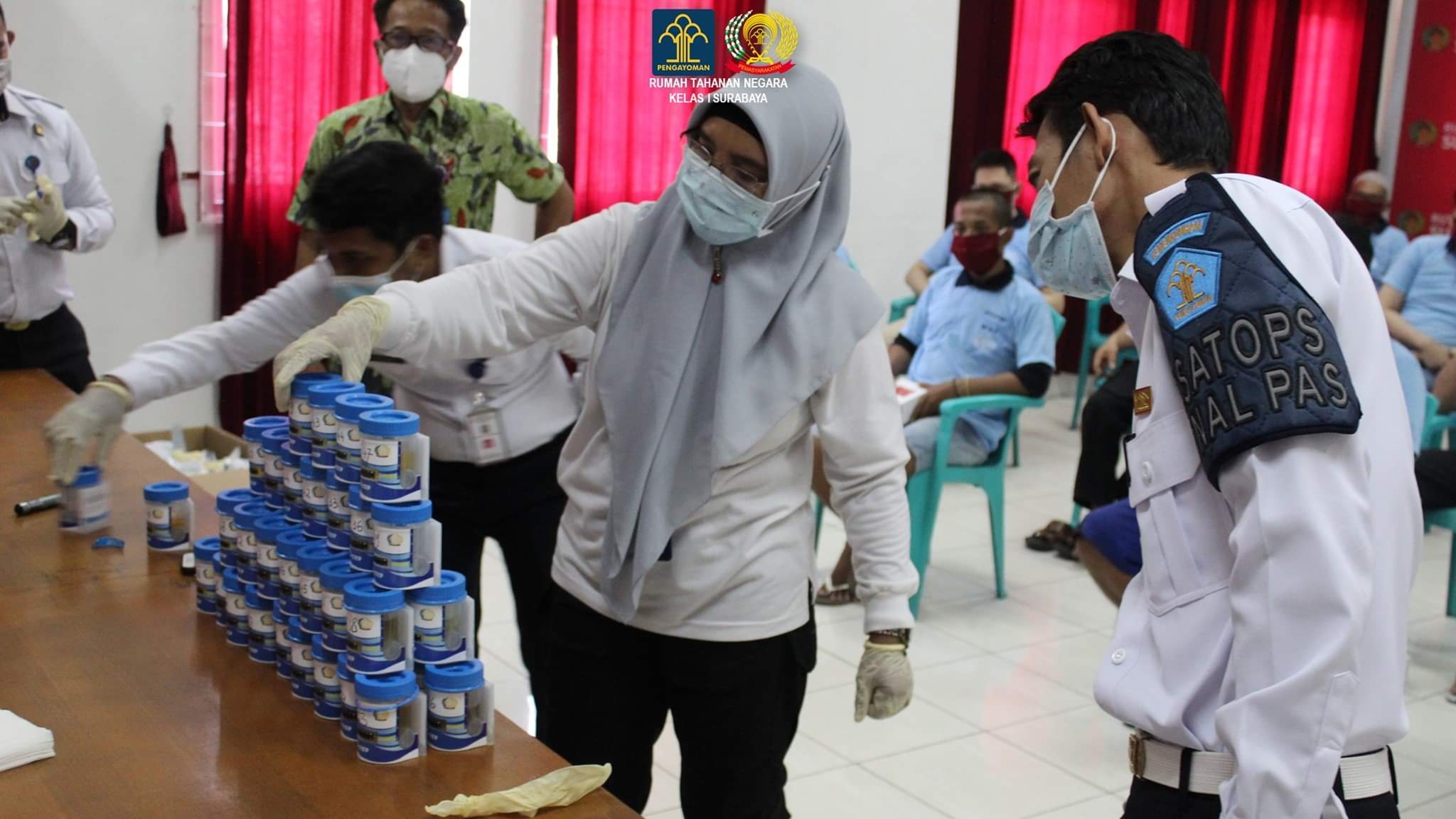 Bertempat di Aula Rutan Kelas I Surabaya, Kegiatan Tes Urine ini diikuti oleh 50 WBP yang dilaksanakan oleh Tim Medis Rutan Kelas I Surabaya dengan disaksikan langsung oleh Badan Narkotika Nasional Provinsi (BNNP) Jawa Timur dan Kepolisian Sektor (Polsek) Waru.