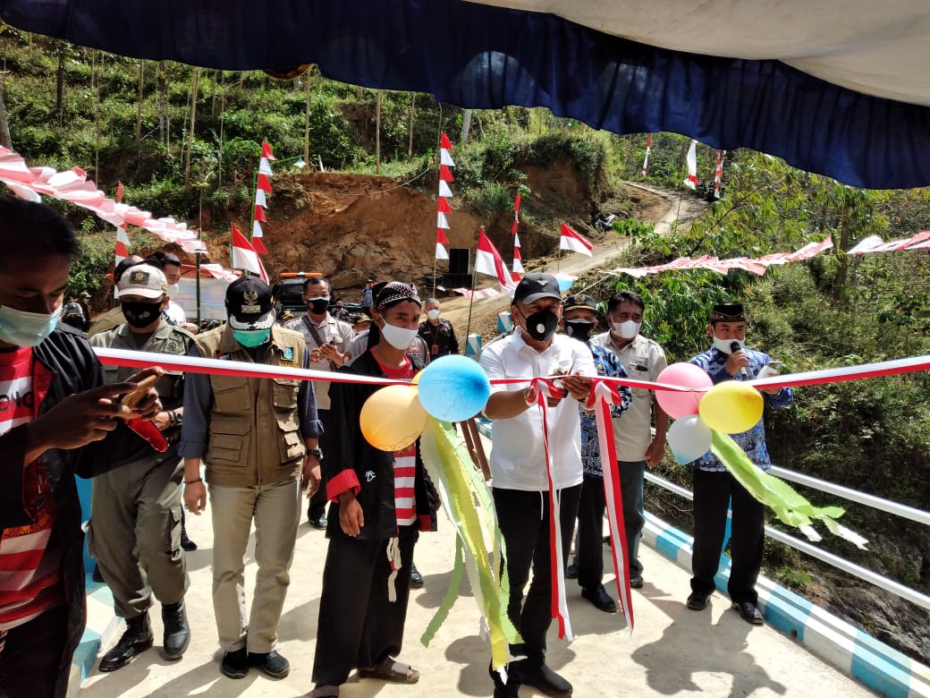 “Pemerintah daerah Kabupaten Ponorogo terus terang saja belum berkontribusi banyak dalam pembangunan jembatan ini, anggaran terserap dalam penanganan wabah covid-19 yang sampai sekarang belum selesai, saya sebagai Bupati belum berperan banyak dalam hal pembangunan, untuk itu saya mohon maaf, “Terang H.Sugiri Sancoko SE,MM.