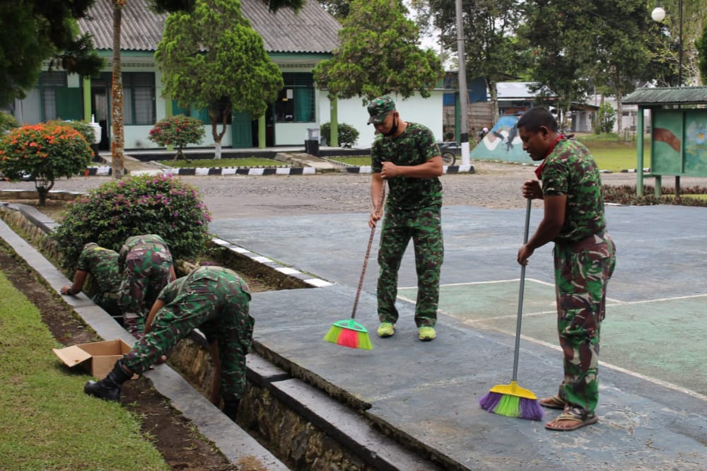 Lambar, RepublikNews – Guna menciptakan lingkungan yang bersih dan nyaman, Kodim 0422/LB laksanakan pembersihan pangkalan. Kegiatan kurve tersebut dipimpin langsung Katuud Dim 0422/LB Pelda hindarmen, Senin (22/6/2020)
