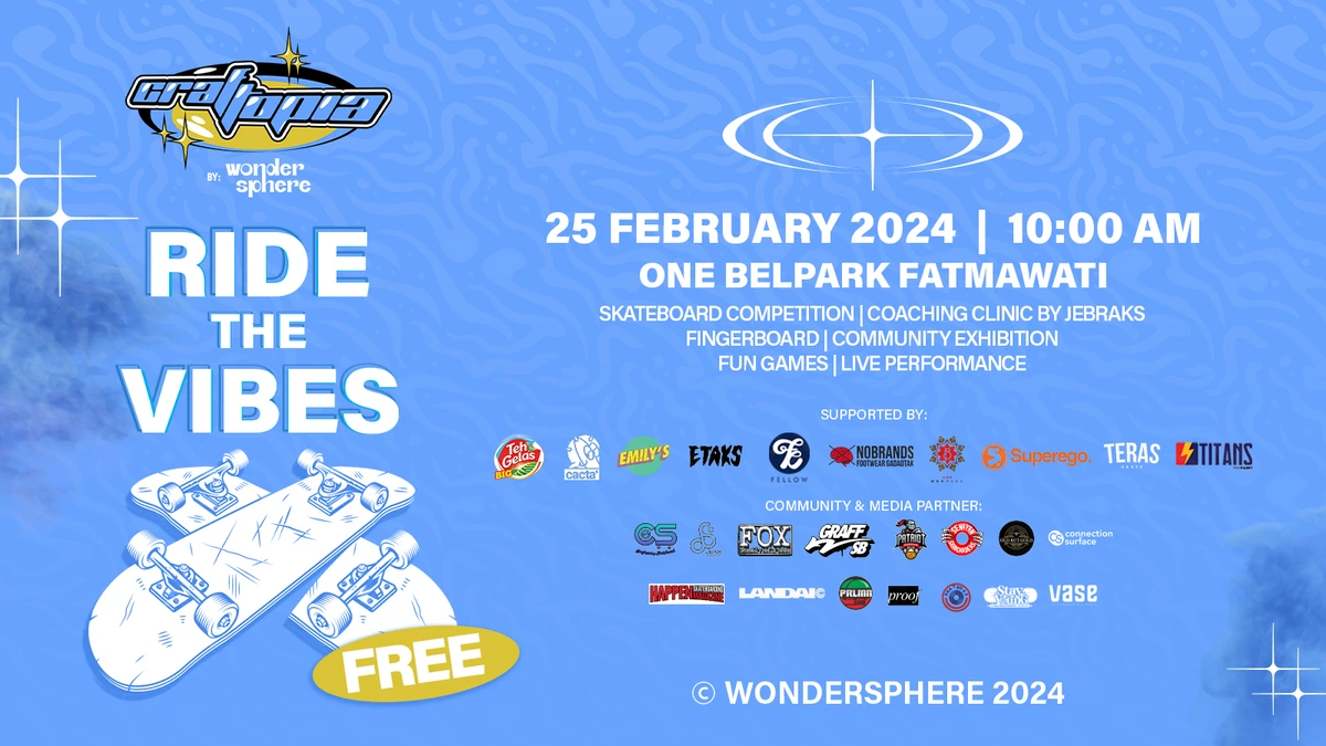 Informasi lengkap dan dokumentasi acara dari Craftopia Ride the Vibes dapat ditemukan melalui kanal media sosial Instagram @bywondersphere.