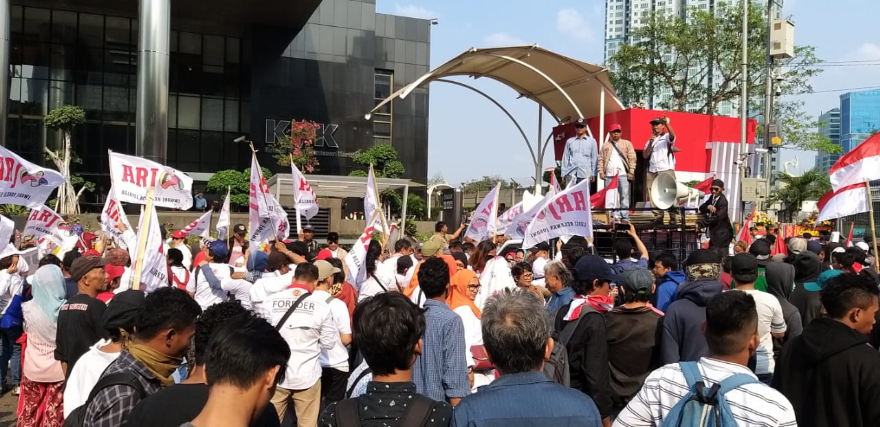 Jakarta, RepublikNews – Sekitar 1000 orang yang terhimpun dalam Aliansi Relawan Jokowi (ARJ) menggelar aksi demonstrasi di depan gedung Komisi Pemberantasan Korupsi (KPK), Jakarta. Senin (16/09).