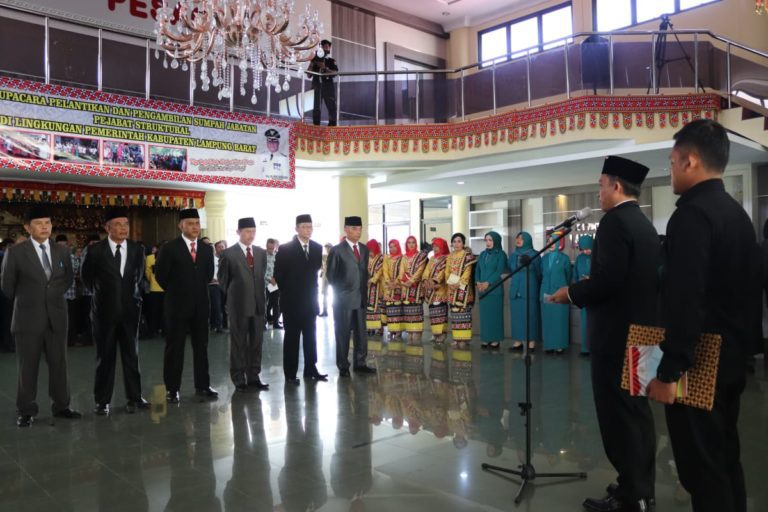 Pelantikan yang dipimpin langsung oleh Bupati Lambar Parosil Mabsus tersebut dilaksanakan di ruang Loby Kantor Bupati, Rabu (24/07/2019).