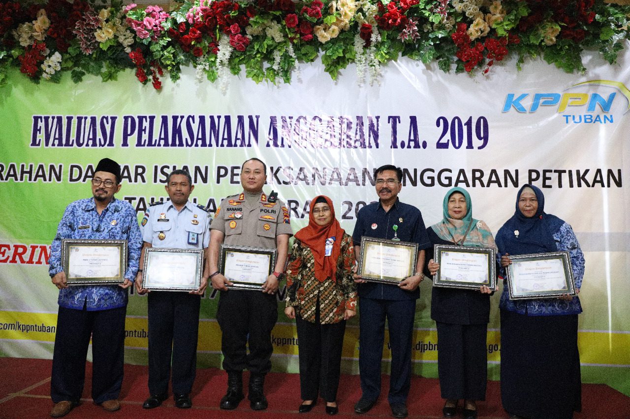Pada kesempatan ini, juga diserahkan penghargaan kepada satuan kerja dengan Kinerja Pelaksanaan Anggaran Terbaik tahun 2019. Juga dilakukan penandatangan pakta integritas antara Kepala KPPN Tuban dengan KPA yang disaksikan langsung Bupati Tuban.