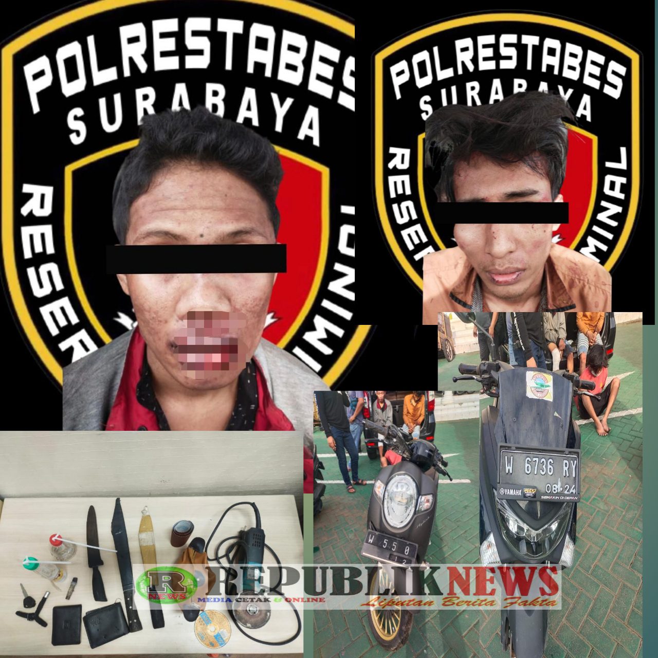 Surabaya,Republiknews-Lagi-Lagi Unit Resmob Satreskrim Polrestabes Surabaya dipimpin oleh Kanit Resmob Iptu Aldhino dan Kasubnit Ipda Prima Andre Bernhasil Ringkus dua pelaku pencuri kendaraan bermotor.