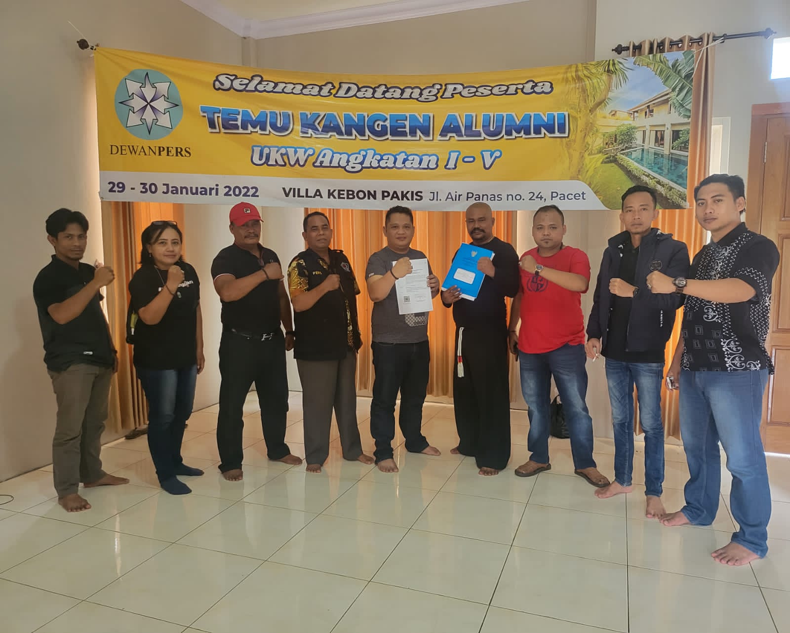 Mojokerto,Republiknews-Forum Komunikasi Alumni Uji Kopetensi Wartawan (FKA-UKW), Solopos Institute angkatan I-V mengelar temu kangen di Villa Pakis, Jl. Air Panas, Pacet, Kabupetan Mojokerto, Sabtu-Minngu (29-30/01/2022).