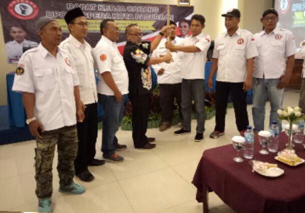 Kadispora kota pasuruan Drs.H. hardi utoyo,M.Si mewakili pemerintahan kota pasuruan, Dengan menyerahkan “Cangkul” kepada ketua DPC pospera kota pasuruan, acara Rakercab di tahun 2020 ini,