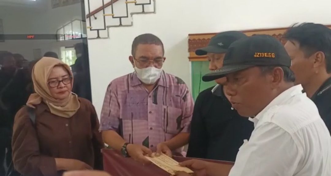 Kordinator aksi, Abdurrahman Tahir, saat memberikan surat tuntutan ke pihak Pemprov Jatim yg diwakili oleh pejabat Bakesbang Jatim