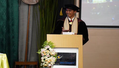 Di akhir orasinya, Prof. Sani juga menyampaikan bahwa penelitian di BINUS University telah menunjukkan bahwa analisis HRV berbasis AI mampu memprediksi aritmia jantung dengan akurasi tinggi, serta meningkatkan klasifikasi tahapan tidur untuk mendukung diagnosis dan pengobatan yang lebih baik.