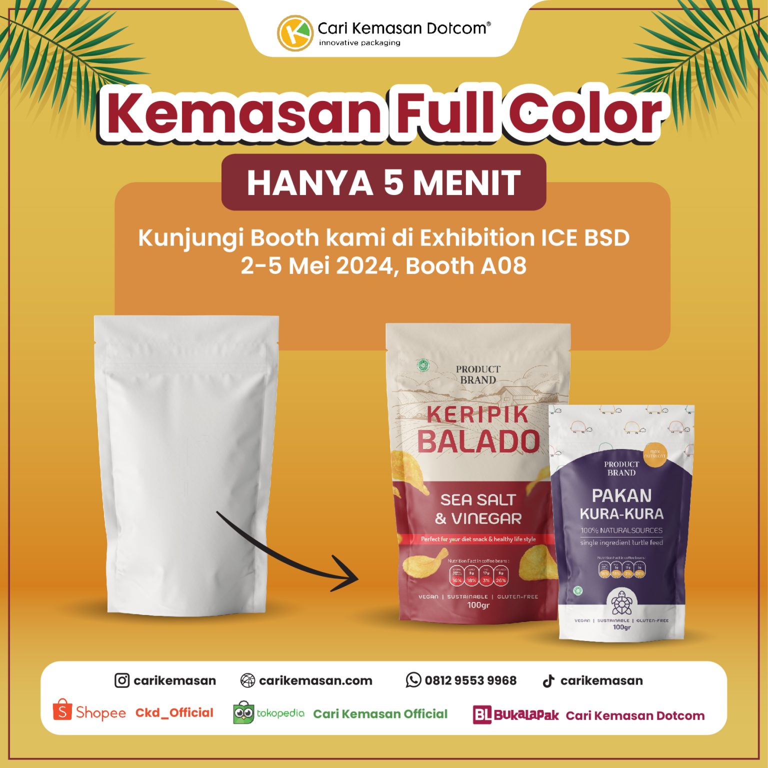 Cetak kemasan impian kini hanya memerlukan waktu lima menit saja, selain itu promosi yang disediakan Cari Kemasan yaitu beli satu dapat tiga, merupakan bentuk dukungan nyata Cari Kemasan untuk para UMKM yang datang saat 2-5 Mei 2024 nanti agar semakin menjadi idaman para konsumen.