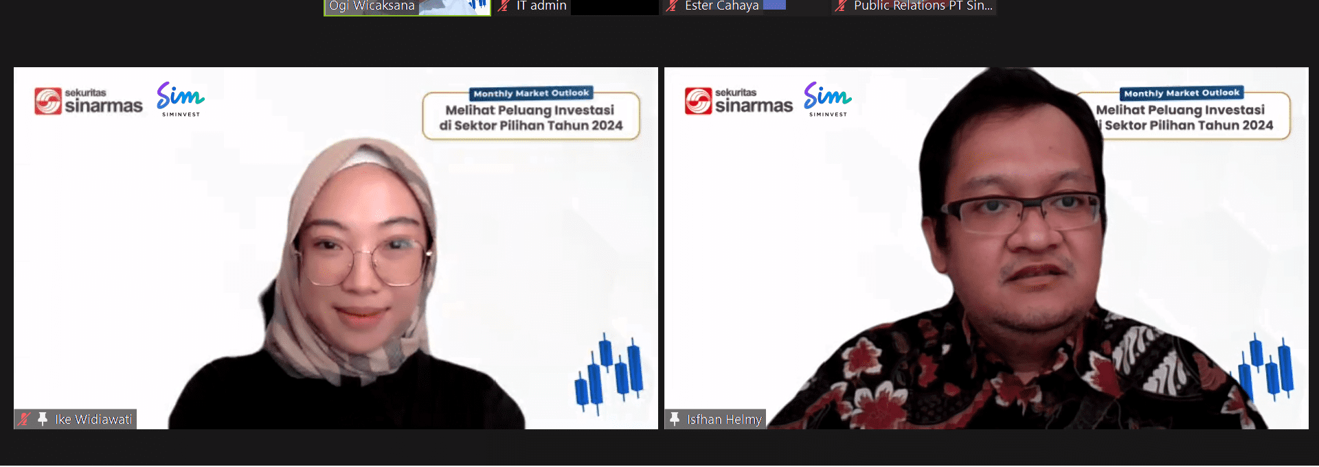 Hal ini menjadi bahasan dalam webinar Sinarmas Sekuritas (SimInvest) yang mengangkat tema Monthly Market Outlook: Melihat Peluang Investasi di Sektor Pilihan Tahun 2024, Selasa (2/11). Acara ini menghadirkan Isfhan Helmy (Head of Institutional Research Sinarmas Sekuritas) dan Ike Widiawati (Head of Retail Research Sinarmas Sekuritas) sebagai narasumber.