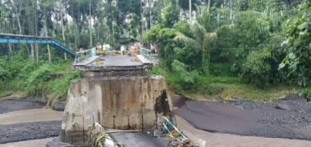 Jembatan penghubung Desa Gesang di Kecamatan Tempeh dan Desa Sememu di Kecamatan Pasirian, terputus, akibat derasnya aliran sungai yang dialiri banjir lahar dingin Semeru.