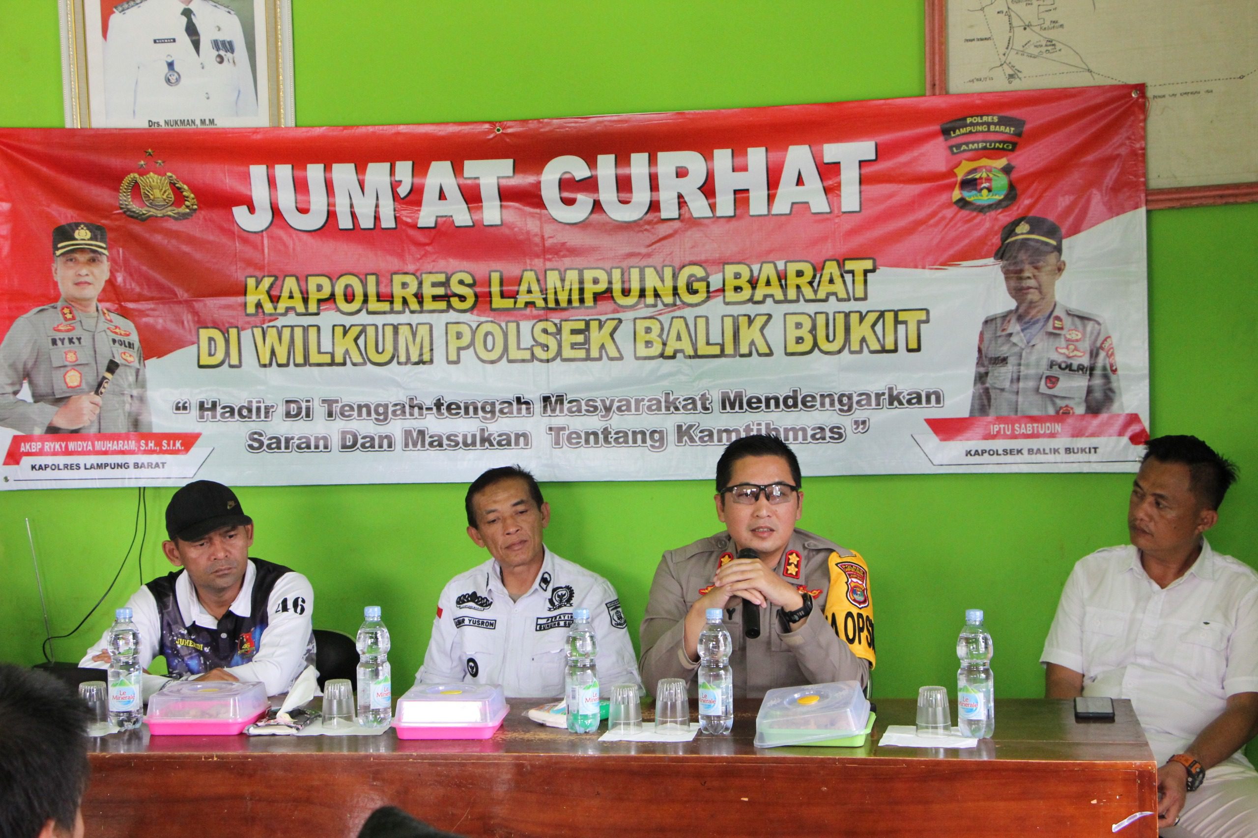 Melalui jum’at curhat ini diharapkan lebih mendekatkan Polres Lampung Barat dengan masyarakat dan dapat menampung masukan atau keluhan dari masyarakat yang tujuannya untuk menciptakan keamanan dan ketertiban dalam masyarakat.humas