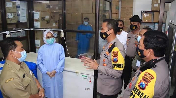 Didampingi Kepala dinas Kesehatan Kabupaten Tuban dr. Bambang Priyo Utomo, Kasatpol PP Hery Muharwanto, S.Sos, M.Si., serta beberapa PJU Polres Tuban . Kapolres Tuban AKBP Ruruh Wicaksono, S.I.K., S.H., M.H., melaksanakan Pemantauan Kesiapan Pendistribusian Vaksin Covid-19 di Kantor Dinas Kesehatan Kabupaten Tuban, Senin (18/01/2021)