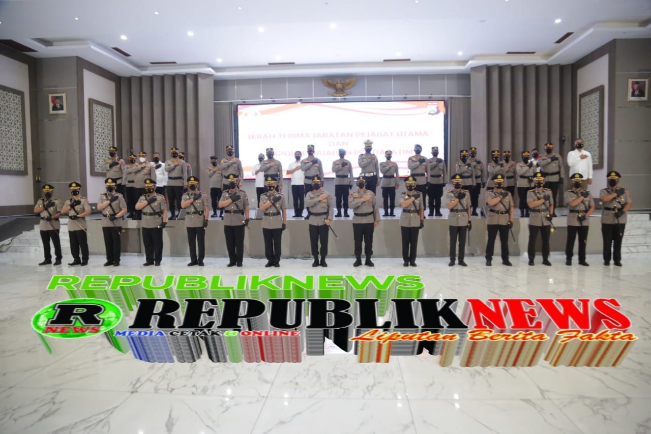 Surabaya, RepublikNews – Kamis (17/6/2021) pagi di Gedung Mahameru Mapolda Jatim. Kepala Kepolisian Daerah (Kapolda) Jawa Timur Irjen Pol Dr. Nico Afinta, didampingi Wakapolda Jatim Brigjen Pol. Slamet Hadi Supraptoyo, Melaksanakan serah terima Pejabat Utama (PJU) dan Kapolres jajaran Polda Jatim.