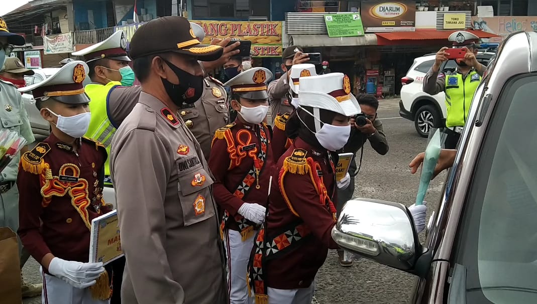 Kapolres Lampung Barat Bagikan Ratusan Masker, Vitamin dan Bunga di Tugu Liwa