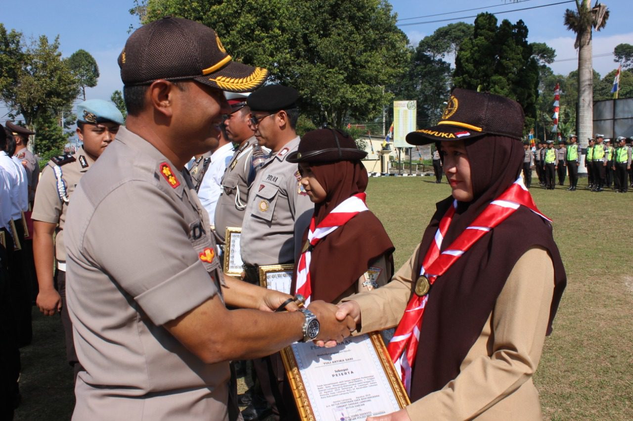Selanjutnya Kapolres Lampung Barat Juga memberikan piagam Penghargaan kepada Siswa-Siswi Pramuka SMAN 1 dan SMAN 2 Liwa. (mat)