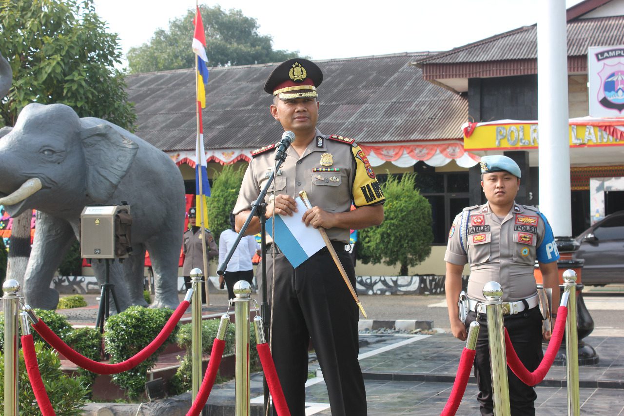 Kapolres Lampung Basrat AKBP Doni Wahyudi,S.IK.selaku Irup dalam amanatnya menyampaikan ucapan selamat kepada Personil ini merupakan proses dinamika berorganisasi dengan naik pangkat setingkat lebih tinggi diharapkan akan semakin matang dan profesional dalam memotifasi dan meningkatkan kinerja menghadapi tantangan tugas yang senantiasa berkembang terus seiring dengan perkembangan jaman.