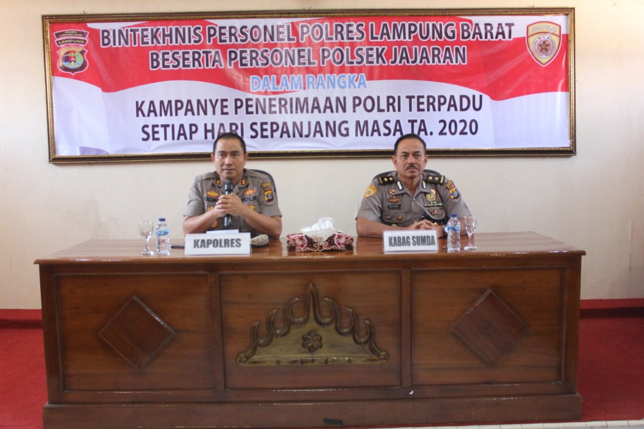 Dalam kegiatan tersebut mengusung tema “intekhnis Personil Polres Lampung Barat beserta Polsek Jajaran dalam rangka kampanye penerimaan Polri terpadu setiap hari sepanjang masa tahun 2020” kegiatan tersebut di hadiri Para Kanit Binmas, Kanit Provos, Kasium Polsek Jajaran serta beberapa Bhabinkamtibmas.