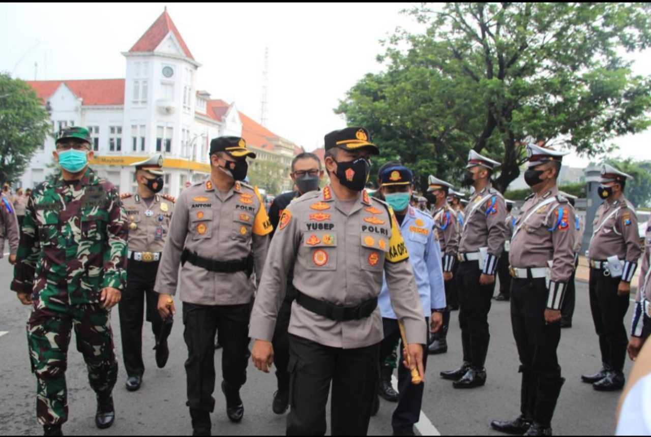 Surabaya,Republiknews–Kapolrestabes Surabaya, Kombes Pol A. Yusep Gunawan, S.H., S.I.K., M.H., M.Han didampingi Kapolres Pelabuhan Tanjung Perak, AKBP Anton Elfrino memimpin Gelar Pasukan Operasi Zebra Semeru 2021 di Depan Mako Polrestabes Surabaya, Senin (15/11/2021).