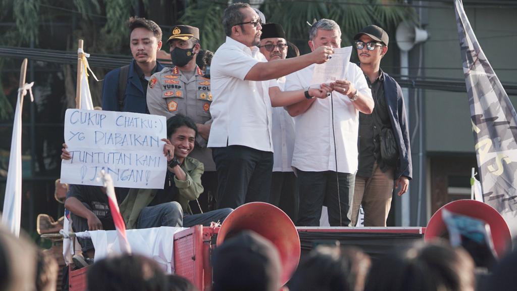Dalam mengamankan demo, Kapolrestabes Surabaya turun langsung dan ikut menemui mahasiswa bersama ketua DPRD Jawa Timur, Kusnadi Untuk meyakinkan aspirasi Mahasiswa diterima oleh Ketua DPRD Jatim.