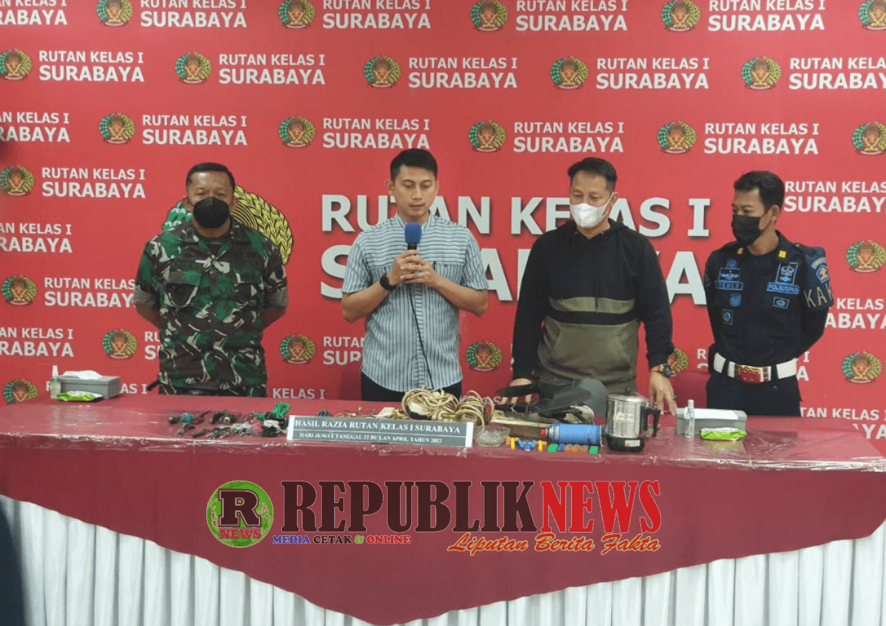 “bahwa Razia Penggeledahan dilaksanakan dalam rangka mencegah/meminimalisir masuknya barang-barang terlarang ke dalam Rutan seperti Handphone, Narkoba dan Senjata tajam maupun penggunaan aliran listrik yang bukan peruntukannya yang bisa menimbulkan bahaya konsleting listrik dan ancaman bahaya kebakaran” kata Kepala Rutan Kelas I Surabaya Wahyu Hendrajati Setyo Nugroho menginformasikan