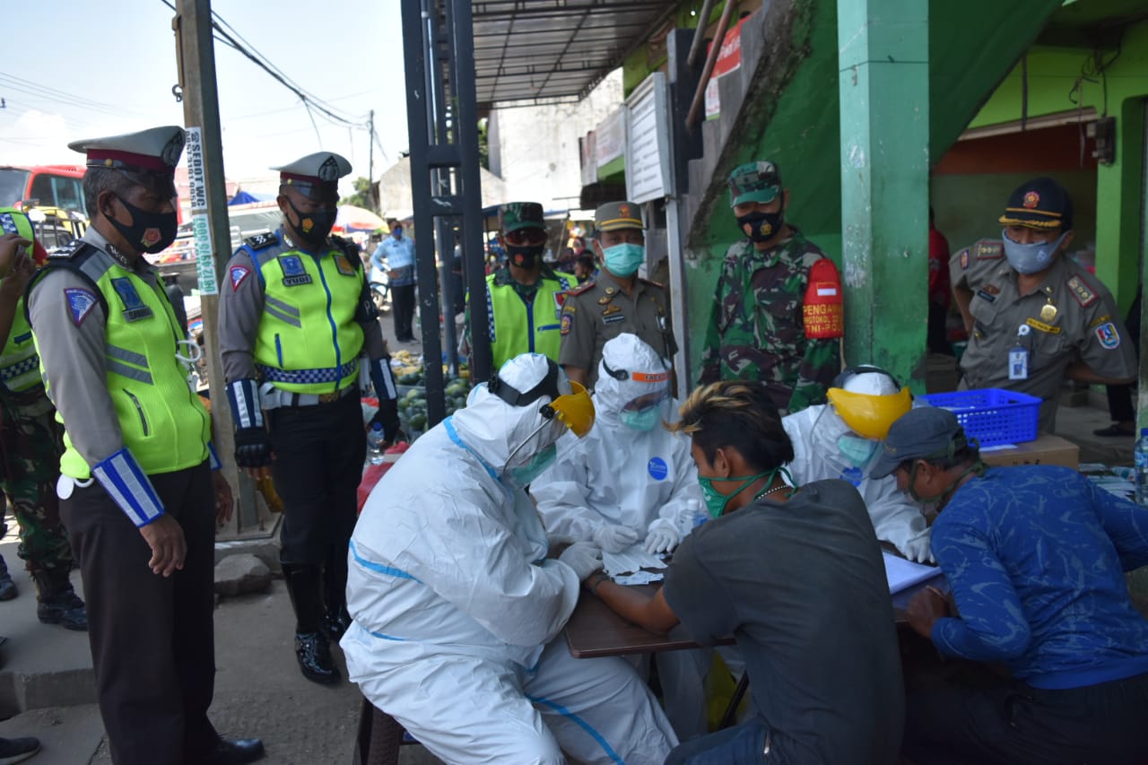 Kasdim 0811 Pimpin Razia Gabungan, Siapkan Rapid Test Bagi Pelanggar Protokol Kesehatan Covid-19 Di Pasar Tambakboyo Tuban