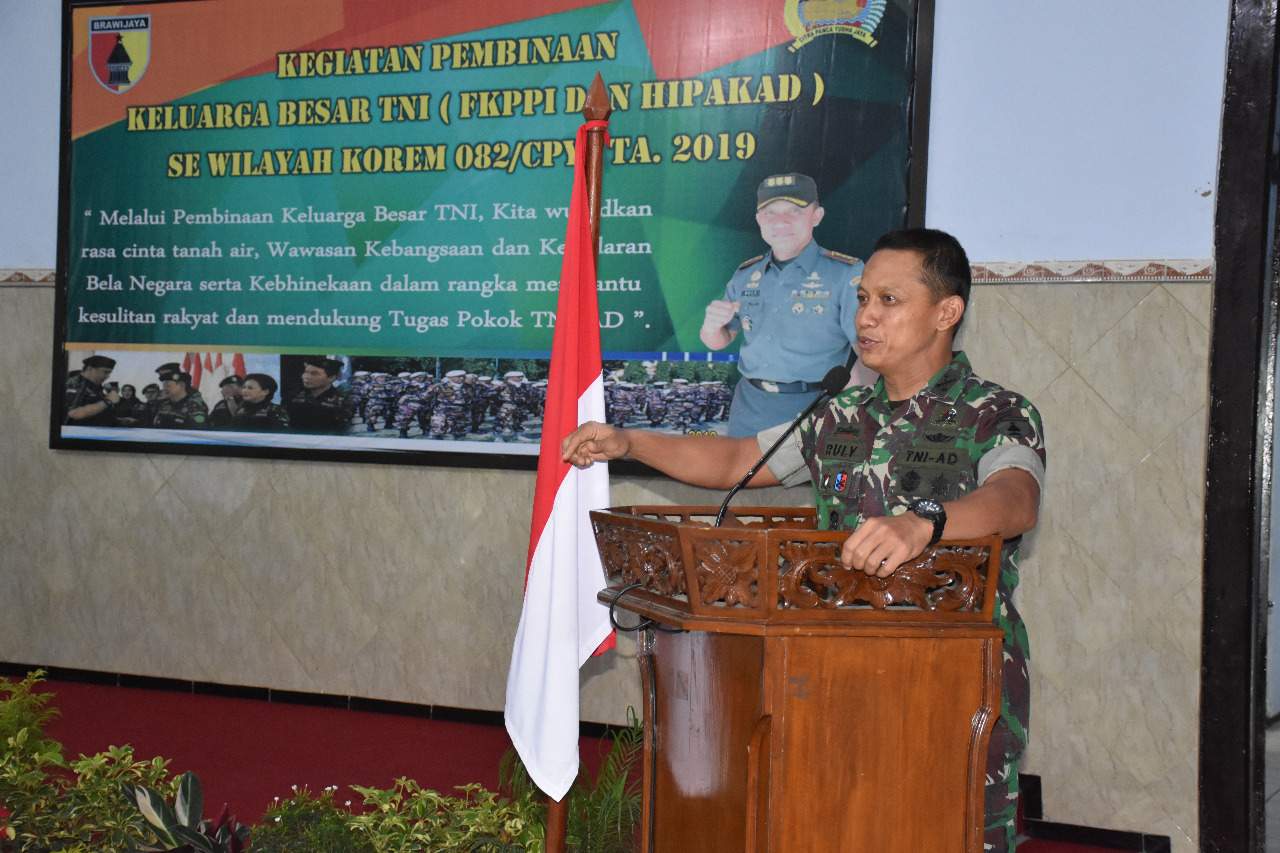 Kota Mojokerto,RepublikNews Danrem 082/CPYJ, Kolonel Arm Ruly Chandrayadi meminta seluruh komunitas Keluarga Besar TNI di wilayah teritorialnya agar terus meningkatkan wawasan kebangsaan, kesadaran bela negara hingga rasa cinta tanah air yang selama ini sudah terpupuk di dalam diri masing-masing Keluarga Besar TNI.