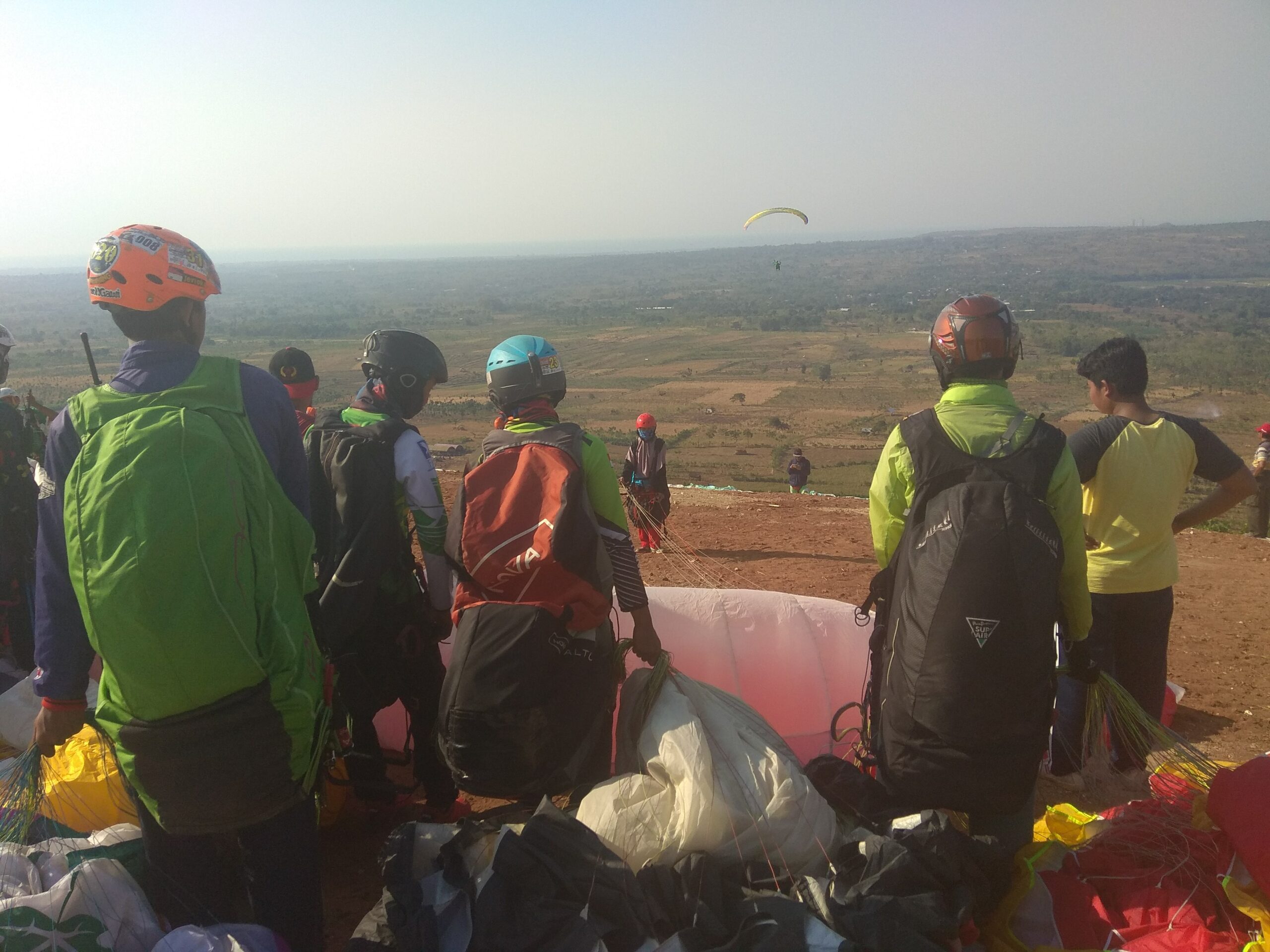 Terik matahari yang sangat menyengat dan angin yang kencang menjadi venue yang menantang bagi para Atlet paralayang