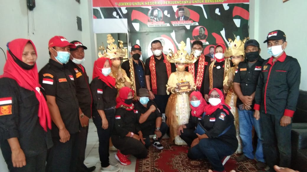Dilanjudkan Prosesi penyambutan ketua umum mabes laskar merah putih perjuangan oleh ketua mada lampung beserta jajajaran Mada dan marcab se Propinsi Lampung. tari sembah Adat Lampung juga terlihat mewarnai perosesi penyambutan ketua umum dan sekertaris mabes LMPP di sekretariat markas daerah lmpp provinsi lampung.