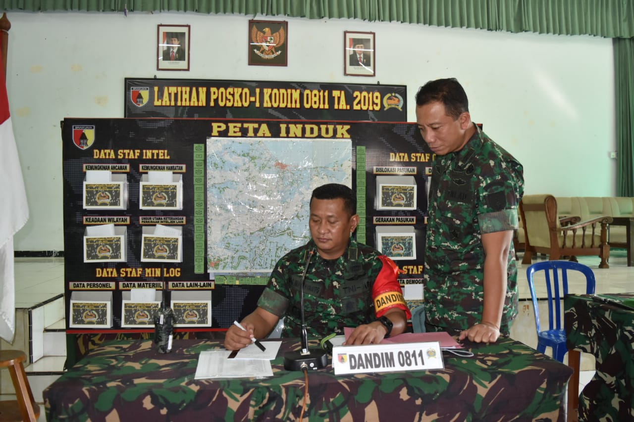Komando Distrik Militer (Kodim) 0811/Tuban Korem 082/CPYJ menggelar Latihan Posko I penanggulangan bencana alam, berlangsung selama tiga hari Senin (27/5/2019) hingga Rabu (29/5/2019) di Aula Letda Sucipto Makodim 0811.