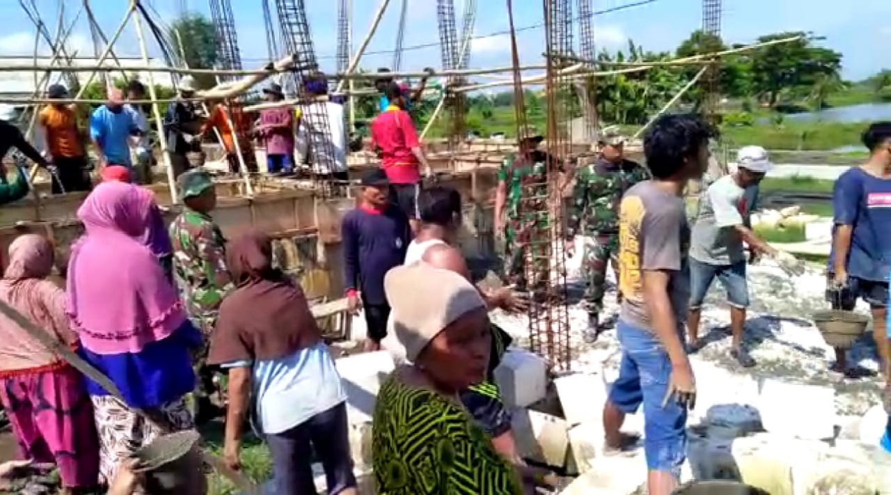 Di lokasi tersebut, anggota Koramil langsung membantu beberapa warga yang saat itu tengah disibukkan dengan adanya pengecoran,hingga pembangunan pondasi Masjid.