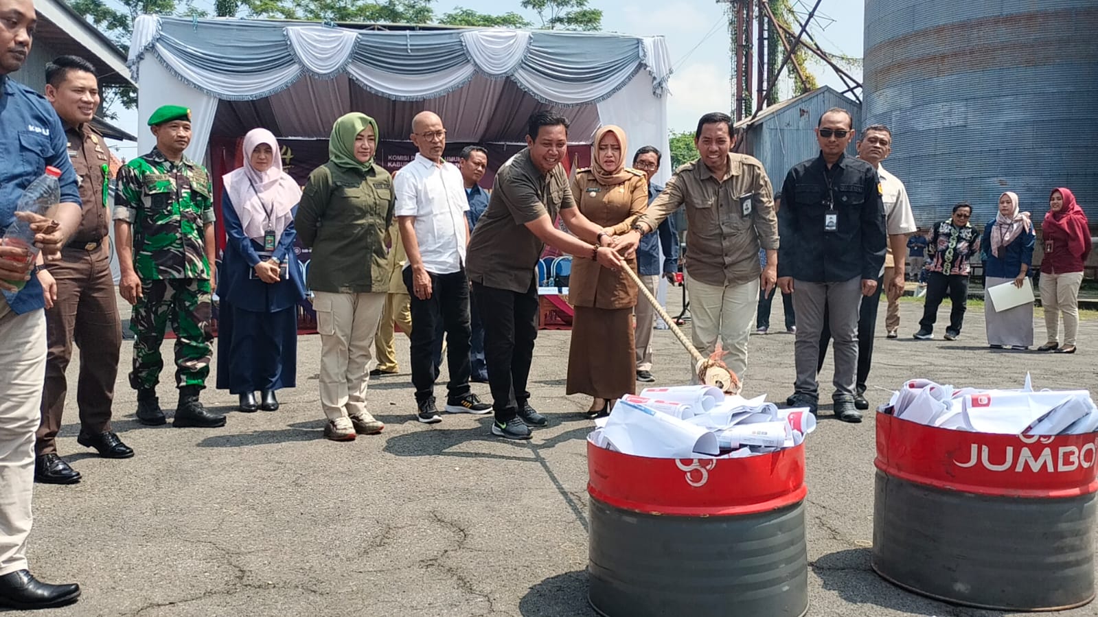 MOJOKERTO | Komisi Pemilihan Umum (KPU) Kabupaten Mojokerto melakukan pemusnahan 4.675 surat suara rusak dan kelebihan hitung Pemilu 2024 di Gudang Bulog, Sooko, Jl. R. A. Basuni No.84, Selasa (13/2/2024) pagi.