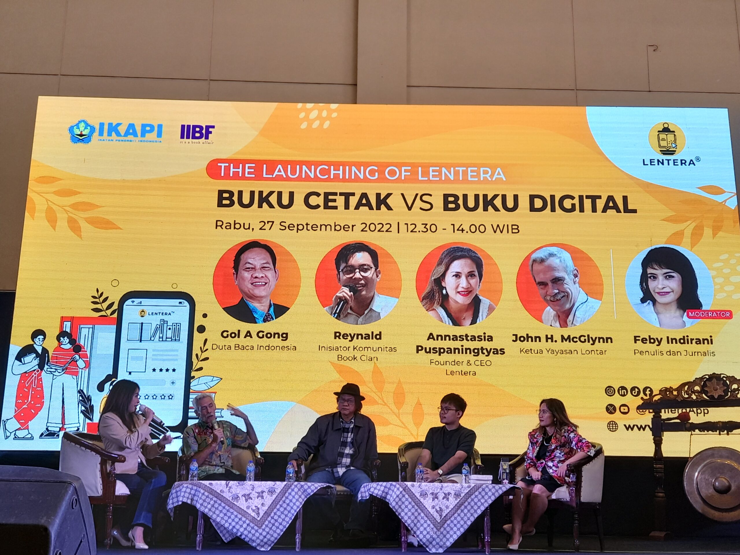 Menjawab pertanyaan yang menjadi keresahan banyak pelaku literasi ini, Lentera App mengadakan kegiatan bincang-bincang dengan mengangkat tema “Buku Cetak vs Buku Digital: Membangun Ekosistem Literasi yang Kolaboratif dan Multifaset”, pada momen peluncuran aplikasinya yang diadakan pada 27 September 2023, di ajang Indonesia International Book Fair di Indonesia Convention Exhibition (ICE), BSD Tangerang. Diskusi ini dihadiri oleh sejumlah narasumber ternama dari berbagai bidang, yaitu, John H. McGlynn selaku Direktur Penerbit Yayasan Lontar, Gol A Gong selaku Duta Baca Indonesia, Reynald selaku Inisiator Komunitas Book Clan, dan Annastasia Puspaningtyas selaku Founder & CEO Lentera. Acara diskusi akan dimoderatori oleh Feby Indirani selaku Penulis dan Jurnalis.