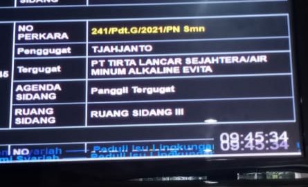 Sleman, RepublikNews – Majelis Hakim Pengadilan Negeri Sleman Kelas 1A, Yogyakarta, diruang sidang III, menggelar sidang perdata dengan nomor perkara 241/ Pdt.G/ 2021/ PN Smn., dengan penggugat Tjahjanto dan tergugat PT Tirta Lancar Sejahtera yang memproduksi Air Minum Dalam Kemasan (AMDK) merk Alkaline dan Evita. Kamis (4/11/2021).