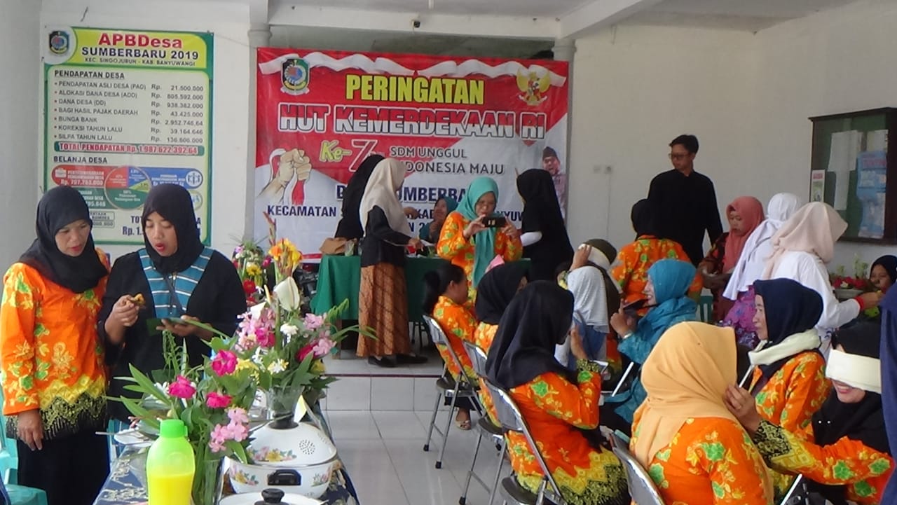 MEMERIAHKAN HUT RI KE 74 IBU IBU PKK DESA SUMBERBARU MENYELENGGARAKAN LOMBA MEMASAK MENU OSING