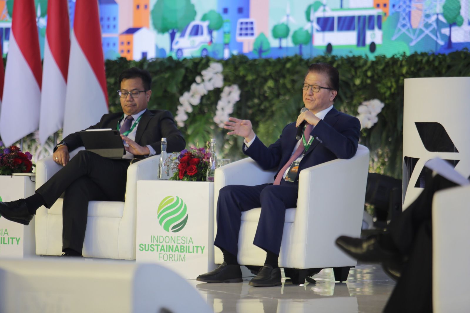 Chairman Sinar Mas Agribusiness & Food, Franky Oesman Widjaja (kedua dari kiri) saat menjadi panelis di acara Indonesia Sustainability Forum, Rabu (7/9/2023) di Jakarta.