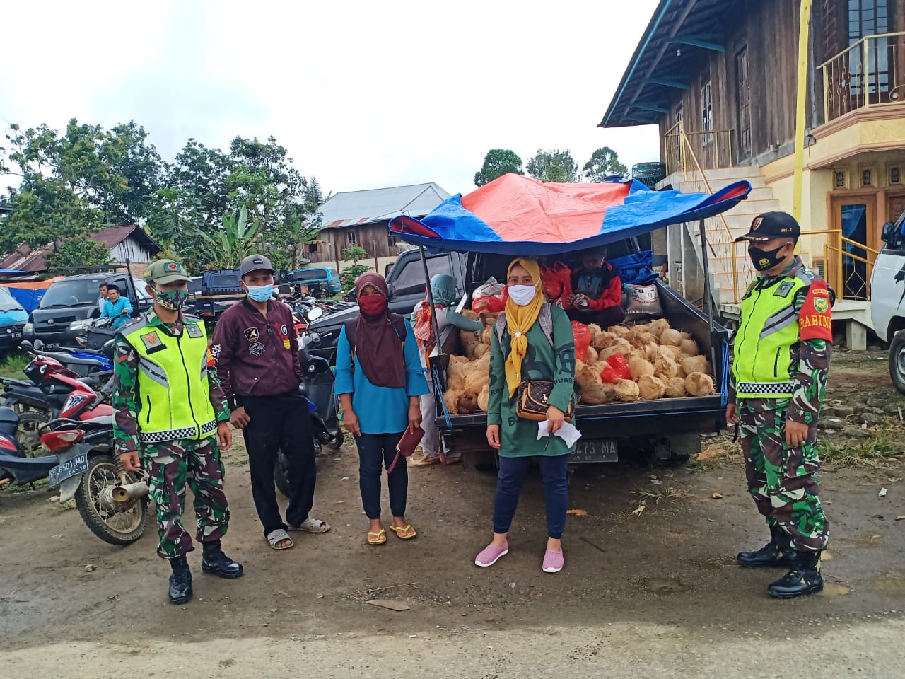 Anggota Koramil 422-07/Batu Brak Sertu Ali Fahrul Efendi dan Kopda Priyanto Bersama instansi terkait melaksanakan operasi gabungan Covid-19 di wilayah binaannya tepatnya di Pasar Pekon Balak.
