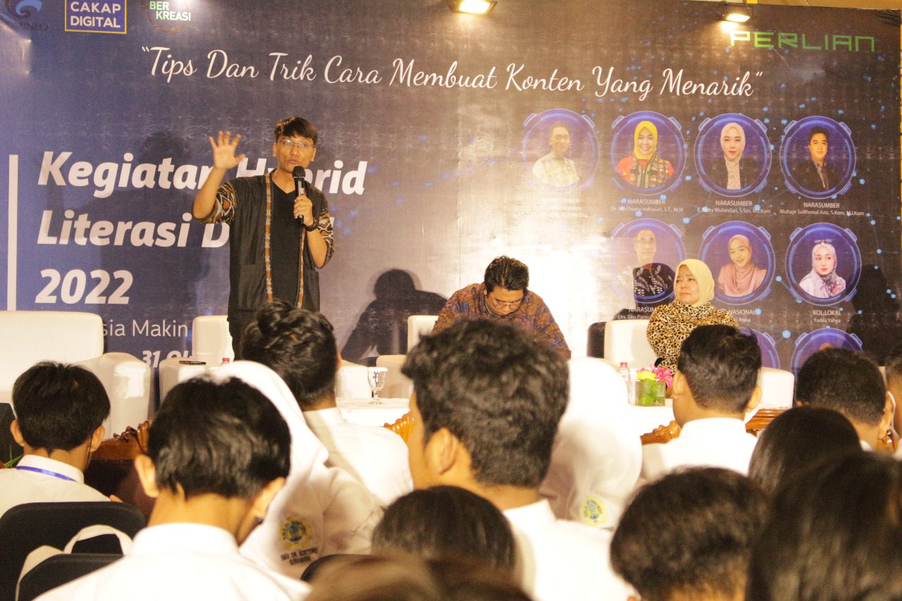 Kegiatan hybrid literasi digital tersebut, juga menghadirkan pelaku konten kreator muda serta influencer media sosial, untuk berbagi tips dan trik konten-konten viral yang menghasilkan “cuan” yang menggiurkan. Peserta tidak hanya mendapatkan literasi tentang konten-konten media sosial yang positif, namun juga mampu menjadi sumber penghasilan yang produktif.