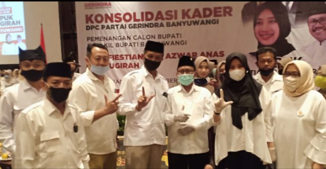 Banyuwang, RepublikNews – Dewan Perwakilan Cabang (DPC) Gerakan Indonesia Raya (GERINDRA) Banyuwangi menggelar acara konsolidasi kader, guna memantapkan kemenangan Calon bupati dan wakil bupati Banyuwangi Ipuk Fiestiyandani – H. Sugirah bertempat di Ballroom Hotel EL Royal Jumat (25/9/2020).