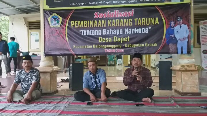 Gresik, RepublikNews – Pemdes Dapet kecamatan Balongpanggang Kabupaten Gresik dibawah kepemimpinan Siswadi, SP., sangat peduli dengan generasi muda, hal ini terlihat dari berbagai kegiatan yang difokuskan kepada generasi muda (karang taruna / Kartar), seperti yang dilaksanakan hari ini (Jumat, 7/4/2023) di balai desa dengan melaksanakan kegiatan “Sosialisasi dan Pembinaan Karang Taruna Tentang Bahaya Narkoba” dengan peserta hampir 100 anggota Kartar Desa Dapet.