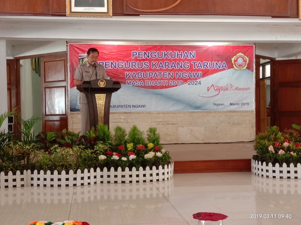 Pengukuhan pengurus karang taruna kabupaten Ngawi periode 2019_2024 ini resmi dilantik dan dikukuhkan oleh orang nomor satu di Ngawi Bupati Ngawi Ir.Budi Sulistyono dipendopo wedya graha pada senin 11/03/2019.