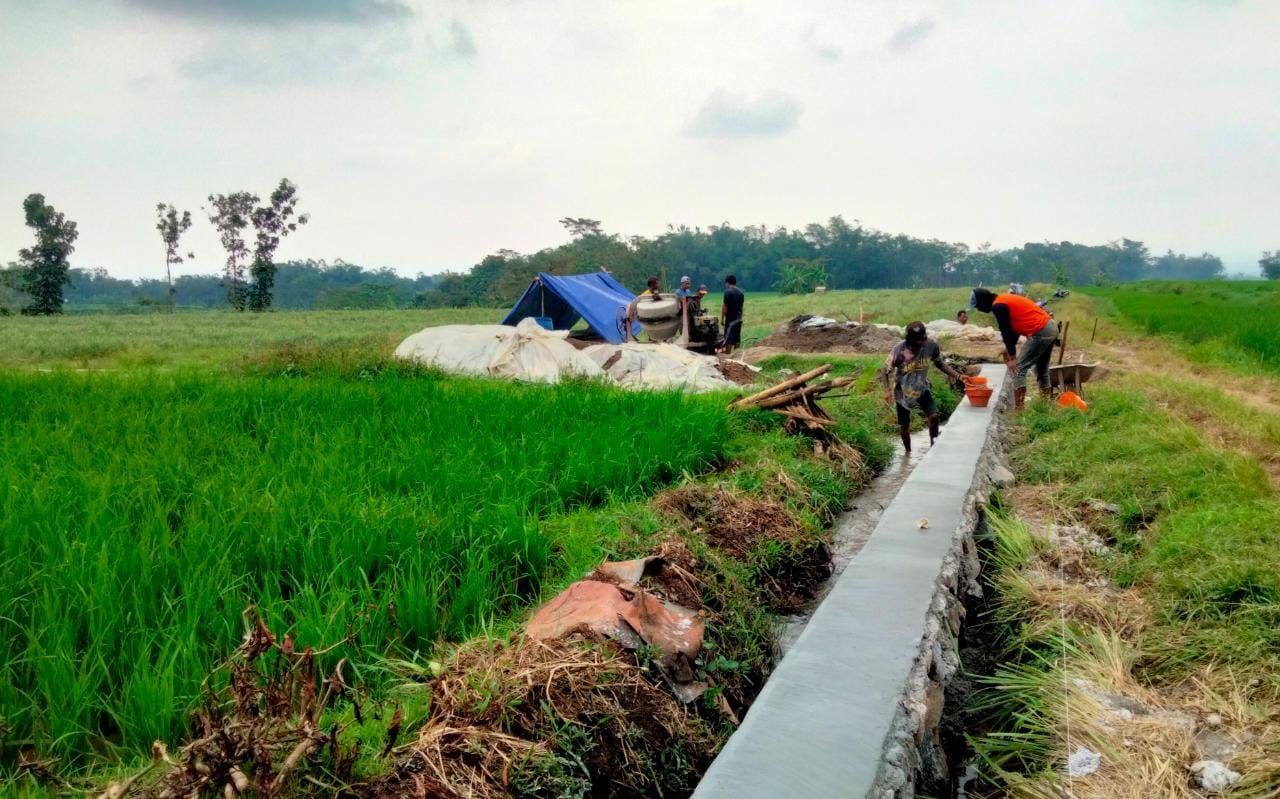Pemdes Ngrambe Bangun TPT Area Persawahan  Penunjang Ketahanan Pangan Warga