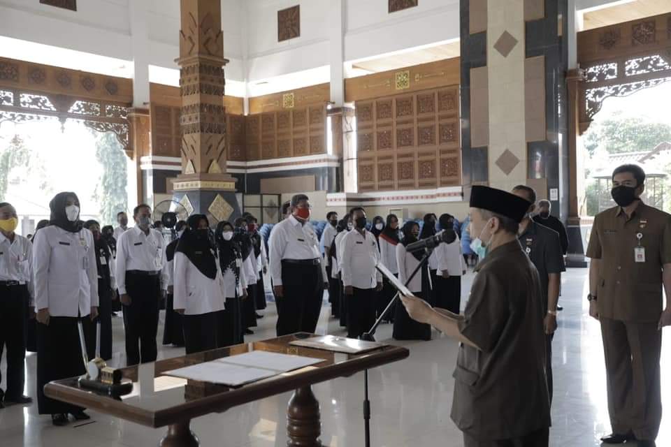 Sekretaris Daerah Kabupaten Tuban Dr. Ir. Budi Wiyana, M.Si. melantik dan mengambil Sumpah/Janji pengangkatan jenjang dalam jabatan fungsional , sebanyak 219 Aparatur Sipil Negara (ASN) di lingkup Pemkab Tuban , yang diselenggarakan di Pendapa Krido Manunggal Tuban, dengan tetap menerapkan protokol kesehatan secara ketat . Kamis 06/08/2020.