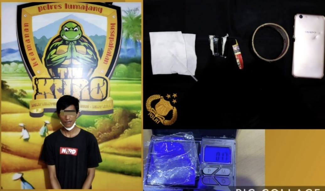 Ia ditangkap petugas Unit Opsnal Satresnarkoba saat berada di dalam rumahnya, Senin (2/8/2021) sekitar pukul 16.00 WIB. “Tersangka kami tangkap berada di dalam kamarnya saat itu ia tengah akan menggunakan sabu,” Ujar Kasat Narkoba Polres Lumajang AKP Ernowo melalui Paur Subbag Humas Polres Lumajang Ipda Andrias Shinta.