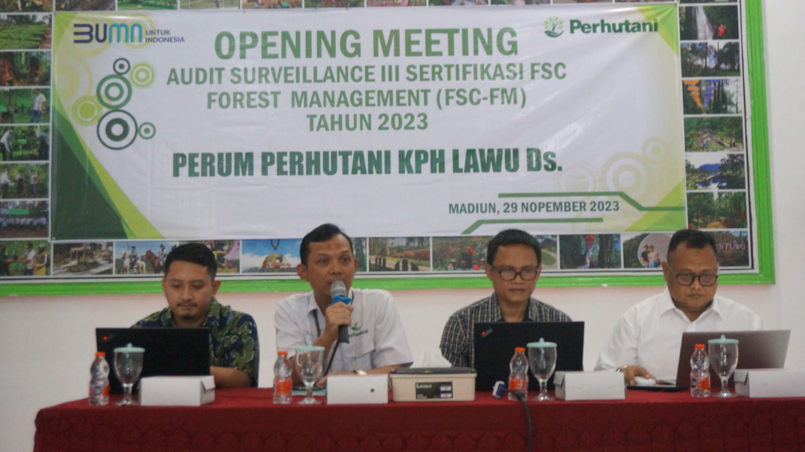 LAWU Ds – Perhutani Kesatuan Pemangkuan Hutan (KPH) Lawu Ds melakukan Opening Meeting Audit Surveillance Forest Stewarship Council (FSC) Forest Management (FM) yang dilaksanakan oleh pihak PT Standard Global Services (SGS) Qualifor Indonesia selama tiga hari, dari tanggal 29 Nopember hingga 01 Desember 2023, di Aula Gunung Lawu, Selasa (29/11).