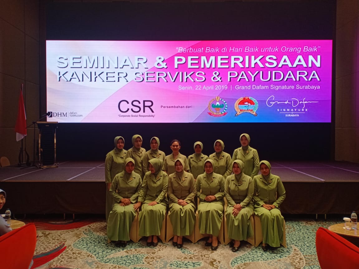 Seperti yang berlangsung di Grand Dafam Siganture, Surabaya saat ini. Tak hanya dihadiri oleh para Persit di wilayah Korem saja. Namun, sosialiasi bahaya penyakit kanker Serviks dan payudara saat ini, juga turut dihadiri oleh para Jalasenastri, hingga para Pia Adhiagarini se-wilayah Kota Surabaya.
