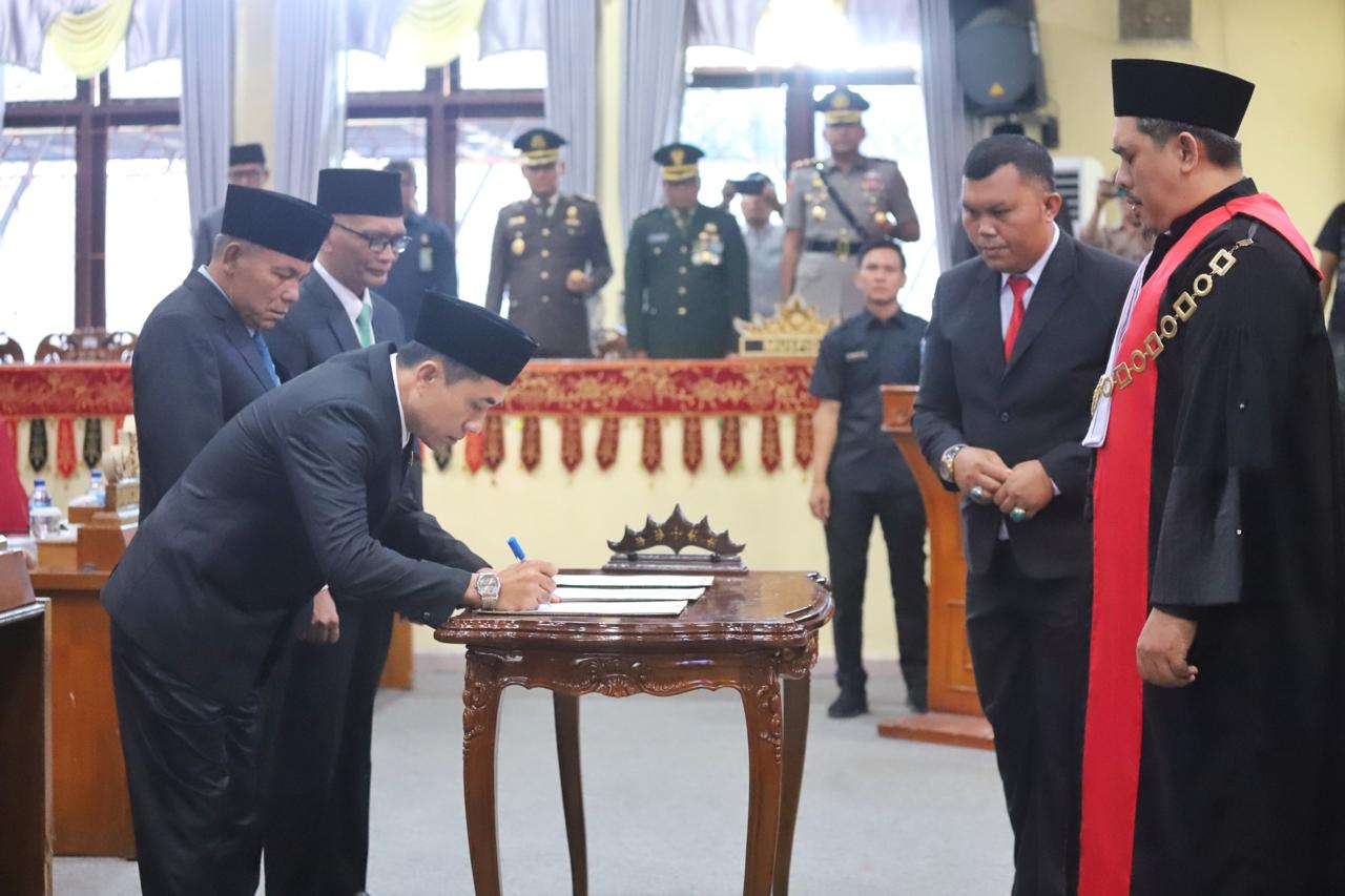 Turut disaksikan Forum Komunikasi Pimpinan Daerah (Forkopimda), Pj. Sekretaris Daerah (Sekda) Drs. Ismet Inoni, Asisten, Staf Ahli Bupati, Kepala Perangkat Daerah, Camat dan Instansi Vertical.