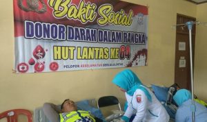 atuan Lalulintas (Satlantas) Polres Lampung Barat menggelar kegiatan sosial yakni Donor darah dalam rangka untuk memperingati hari ulang tahun Polantas ke 64 tahun 2019, di rumah sakit umum Alimudin Umar Liwa pada Selasa (17/9/2019).